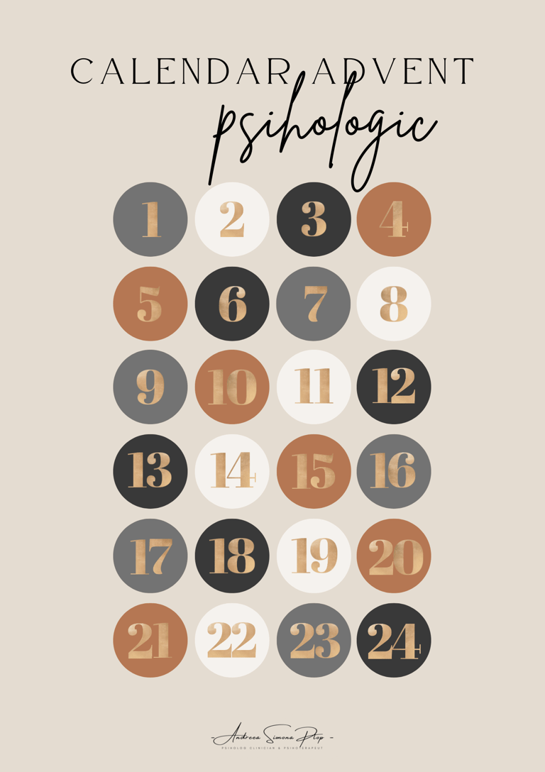 Acest calendar de advent este pentru oricine simte presiunea sărbătorilor, și nu numai. Fie că te confrunți cu stresul, ai un program încărcat sau pur și simplu cauți modalități de a prioritiza sănătatea mintală, acest calendar este conceput pentru a te ajuta.